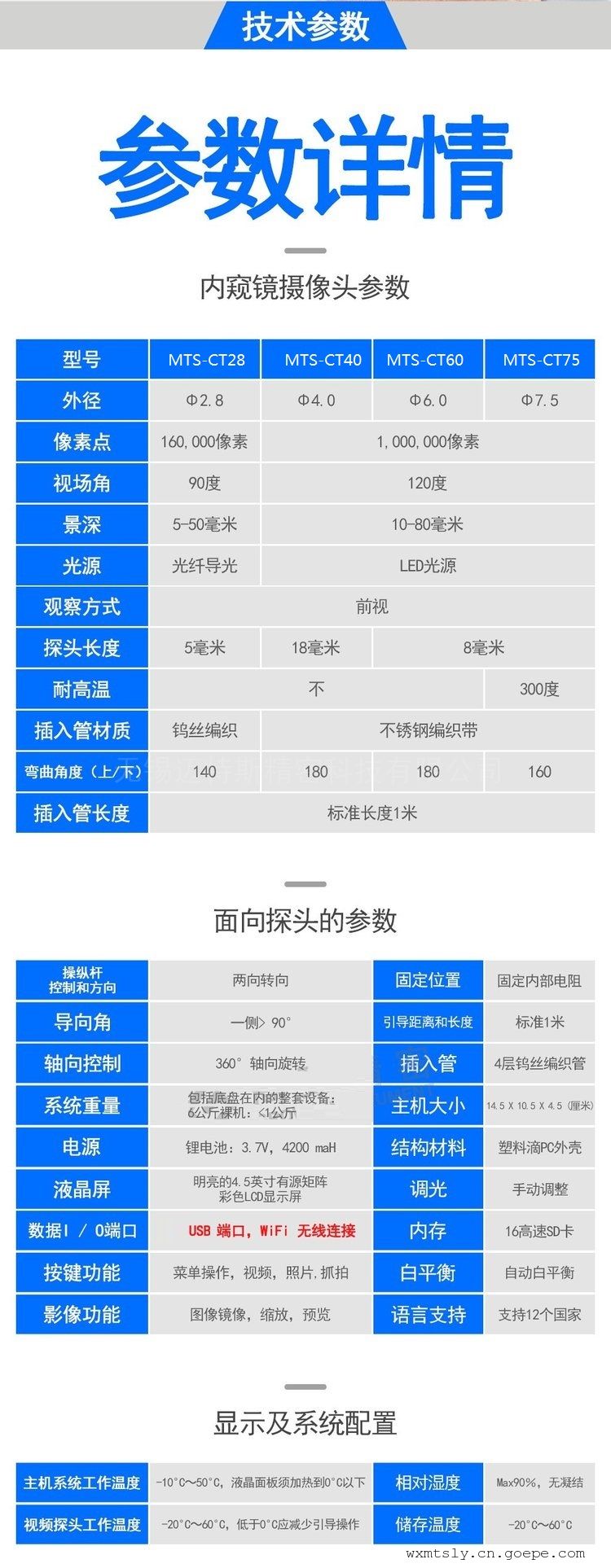储存温度 -20°C?60°C型号: 可转向工业视频内窥镜MTS-CT28 CT40 CT60