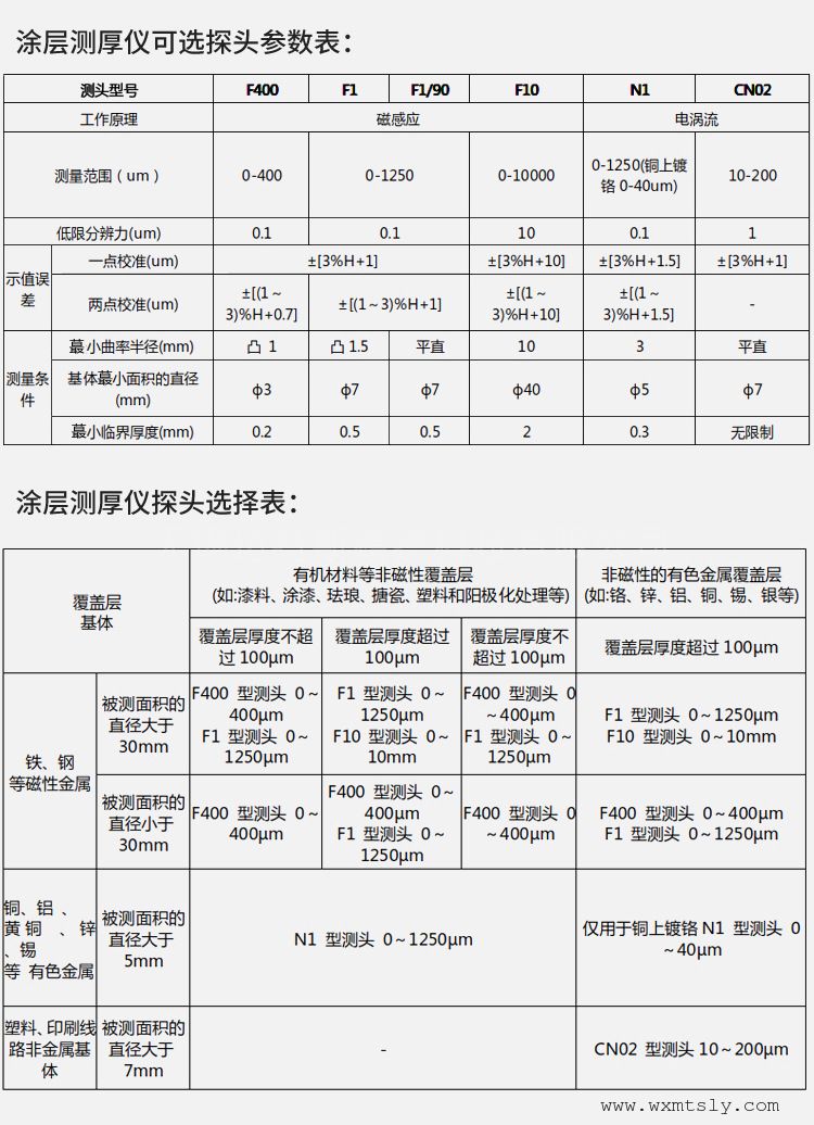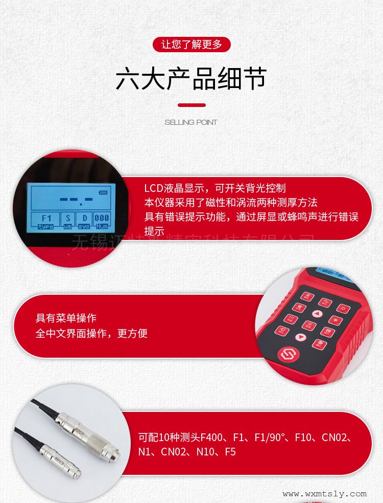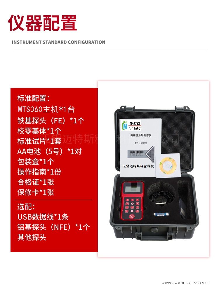 MTS360高精度涂层测厚仪 工件镀层厚度检测 MTS360高精度涂层测厚仪探头选型:测头类型 F N 工作原理 磁感应 涡流 测量范围(μm) 0~2000 0~1500