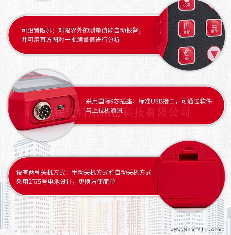 - 具有温度补偿功能:国内领先的实时温度补偿技术可自动对环境温度及测头温度改变引起的测量误差进行补偿,使测量更准确。
