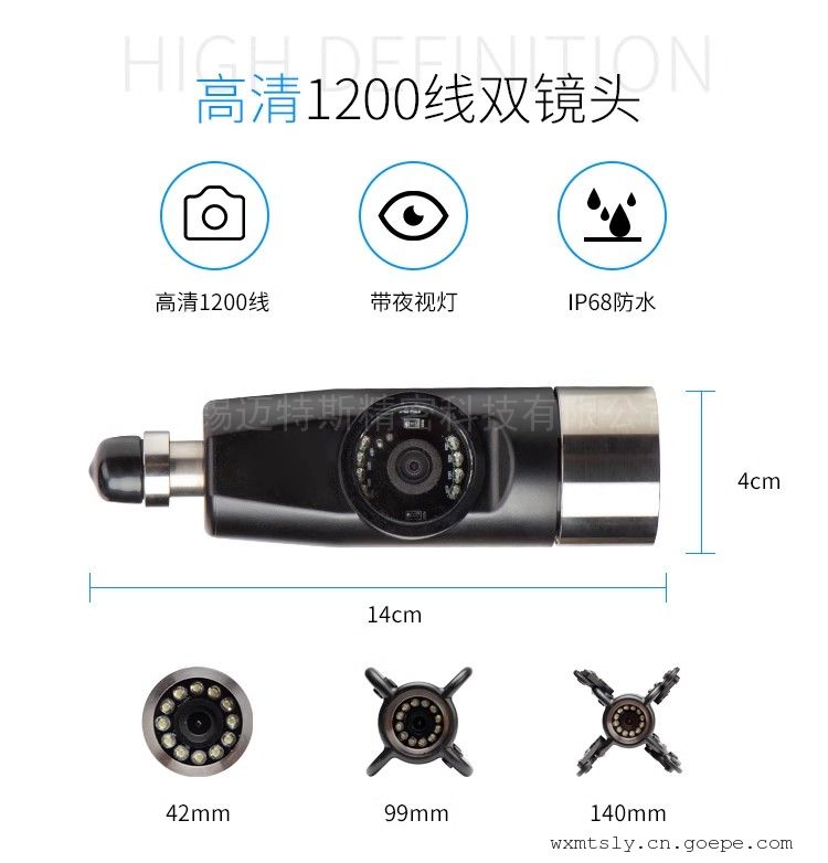 所 在 地: 江苏无锡滨湖区 更新日期: 2023-12-04 详细信息| 询价留言品牌:迈特斯(MATTES) 型号:MTS-D42L50D 加工定制:是 探头直径:40 mm 用途:检测工业市政下水管道,长管道, 加工定制:是 -