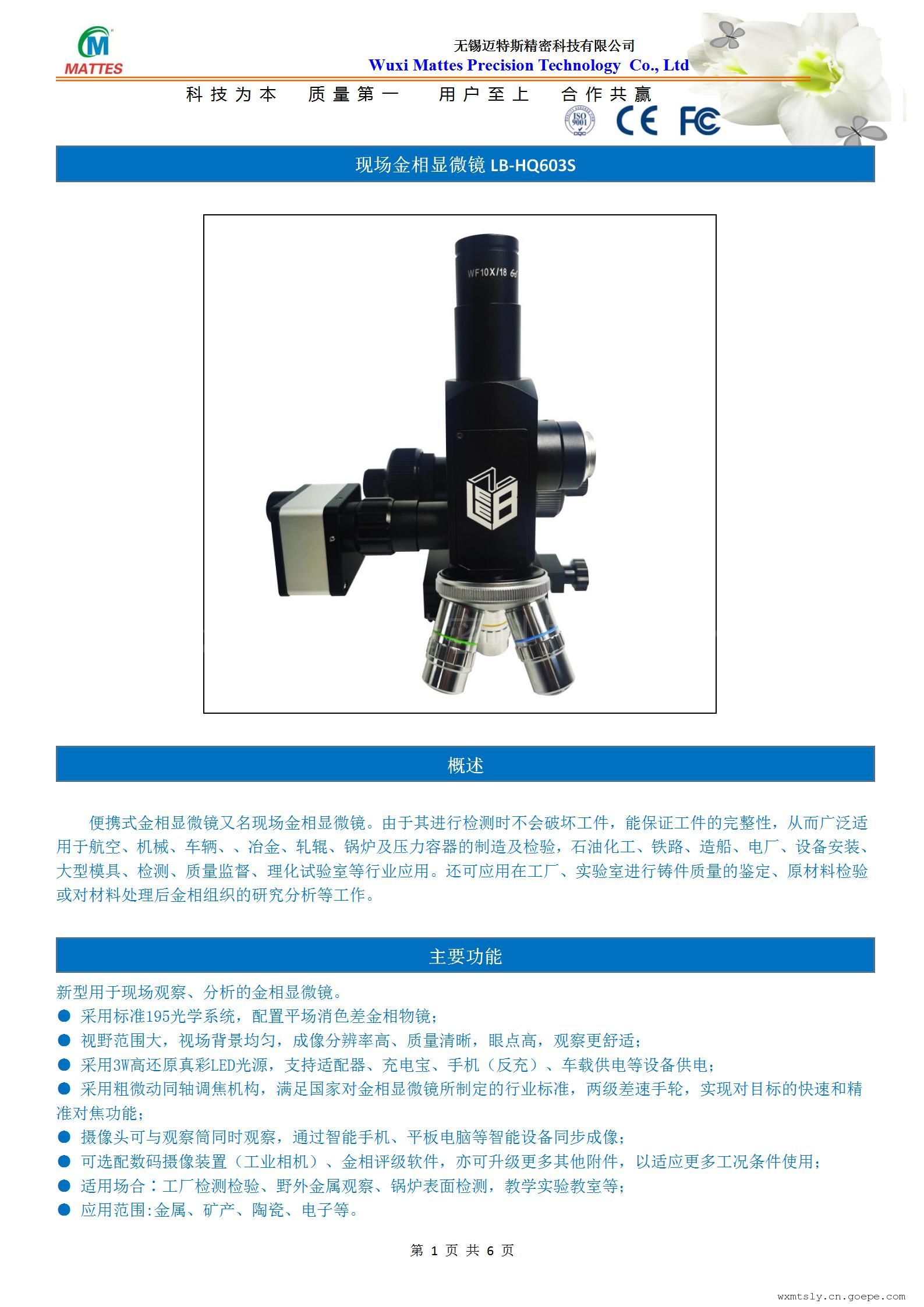 迈特斯(MATTES)可配无线CCD+分析软件现场直接检测的便携型金相显微镜LB-HQ603S
