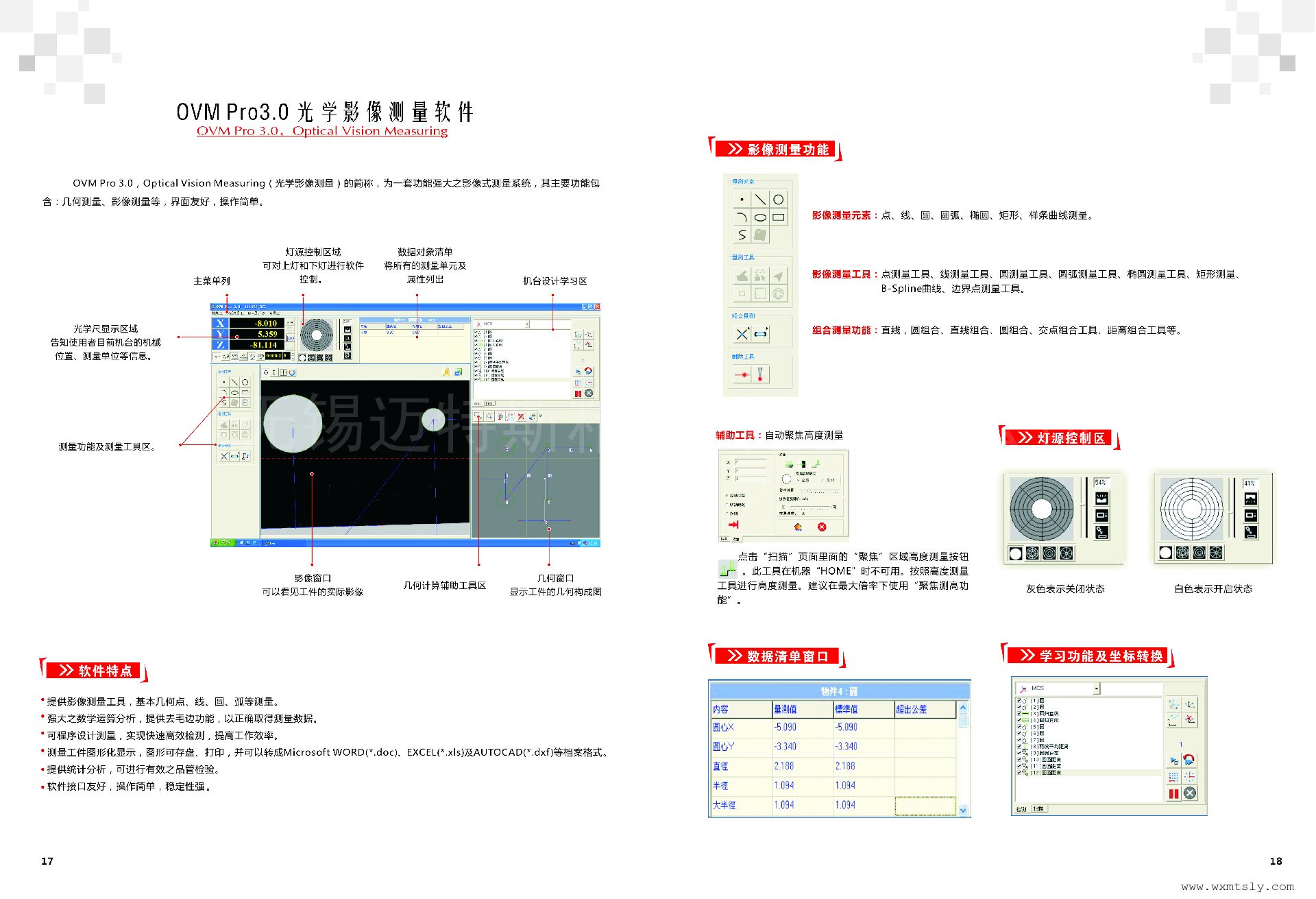 配合以公司自行研发的OVM Pro全自动光学量测软件,实现了工件大批量、快速检测,同时具备SPC数据分析功能。产品特点1、4相可程控LED冷光源上灯,可对各种复杂工件做表面测量,使量测精度更高。